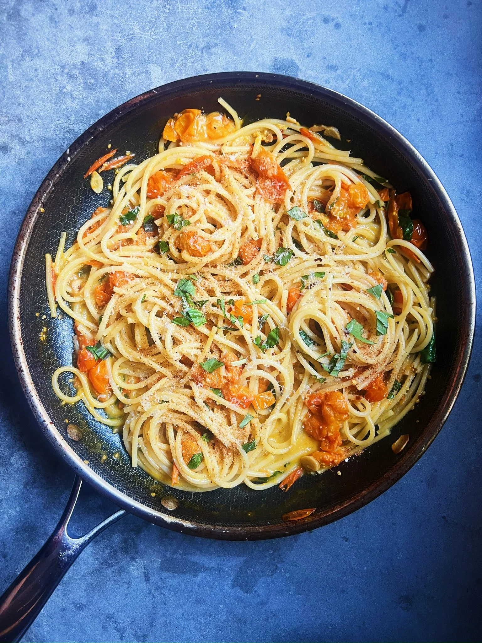 Erica Shekari - Pesto Pasta with Parmesan and Pine Nuts